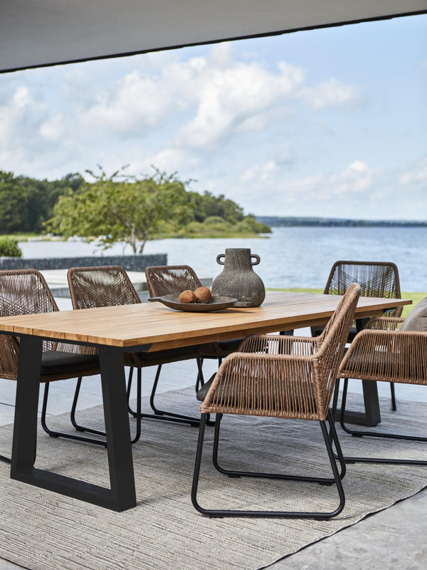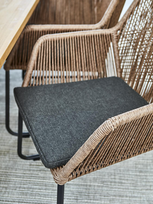 Midway est une série en rotin artificiel tressé avec des formes modernes douces. Elles ont toutes une structure en aluminium et sont en rotin artificiel tressé à la main. La série inclut une table à manger, un fauteuil, un repose-pieds et un banc. Les canapés et les chaises sont équipés de coussins en tissu oléfine. Disponible en deux couleurs différentes.