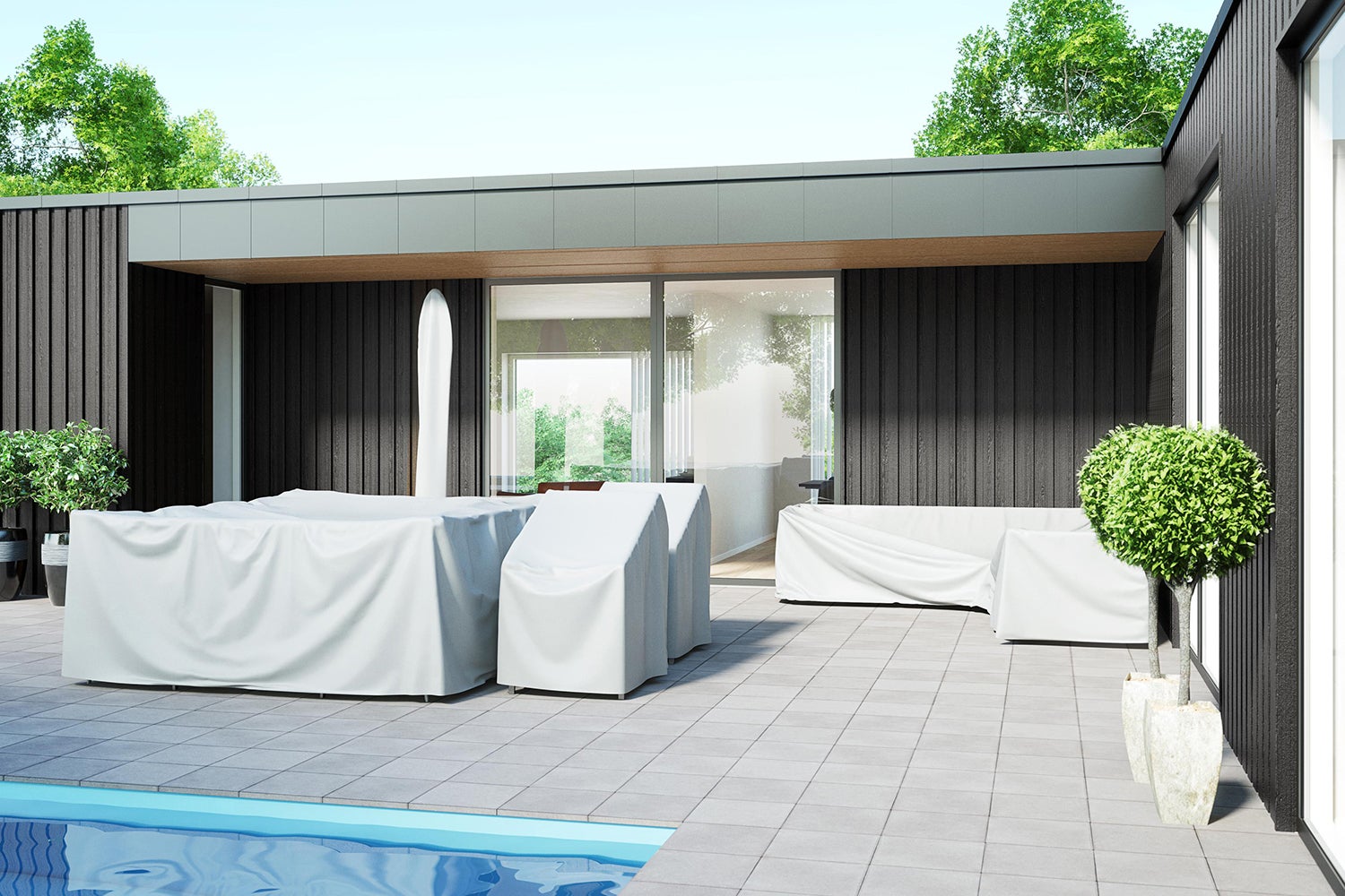 Pour maximiser pleinement le potentiel d'une housse de meuble, il est important d'identifier la taille appropriée. Si la housse de meuble est trop serrée, certaines parties du mobilier d'extérieur peuvent rester non protégées et/ou des parties de la housse peuvent être étirées, entraînant une usure inutile du matériau. Si la housse de meuble est trop grande, elle peut s'affaisser, augmentant le risque d'accumulation d'eau. En d'autres termes, une housse de meuble de la bonne taille est cruciale, alors prenez le temps de mesurer et d'identifier la housse adaptée à vos meubles d'extérieur. Pour identifier la housse de meuble appropriée, commencez par disposer les meubles d'extérieur comme ils seront positionnés lors de l'utilisation de la housse. Ensuite, mesurez toutes les dimensions extérieures en tenant compte des mesures les plus élevées et les plus longues. Gardez à l'esprit qu'il peut être difficile de trouver des mesures exactes, alors choisissez la taille plus grande qui se rapproche le plus des mesures que vous avez identifiées.