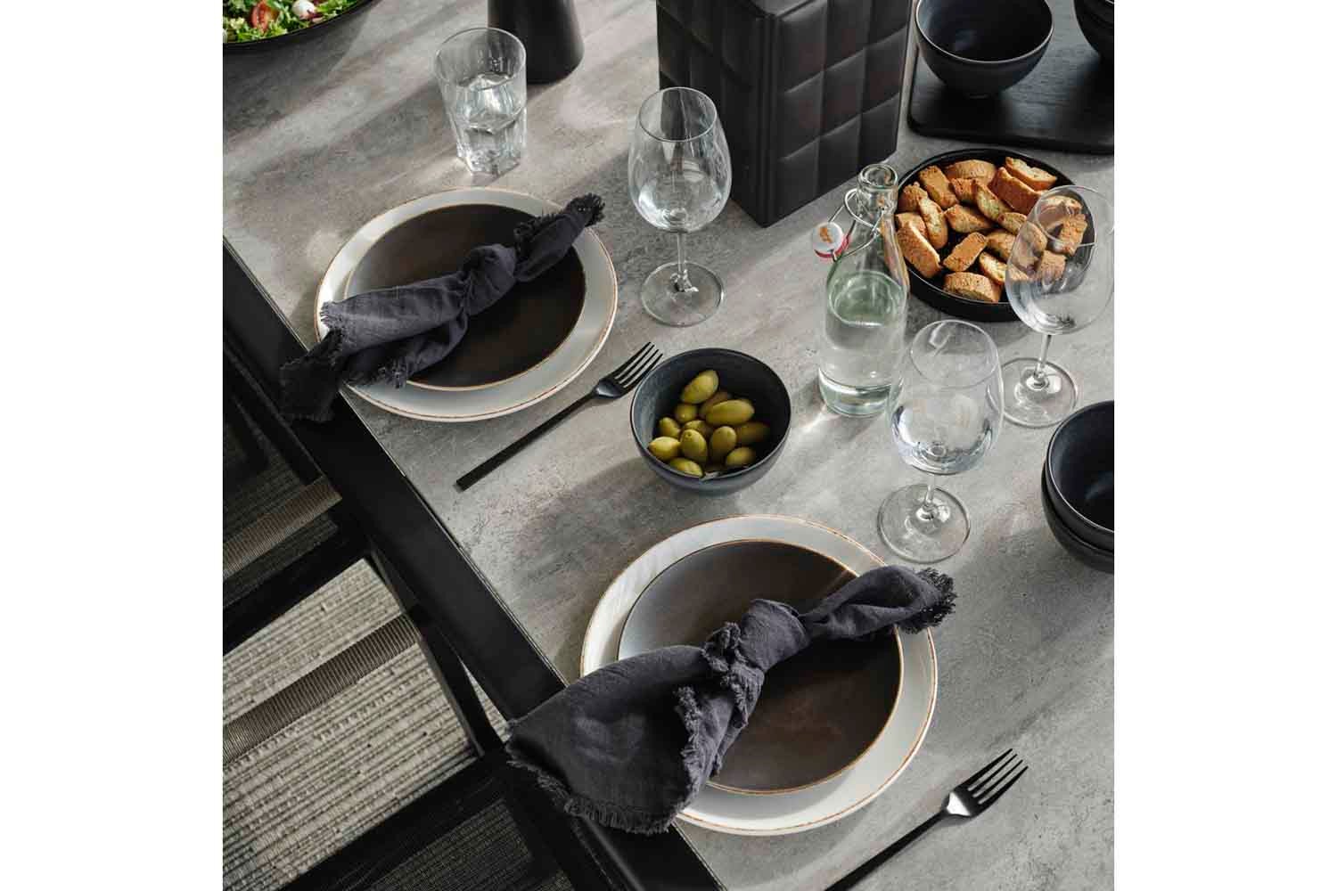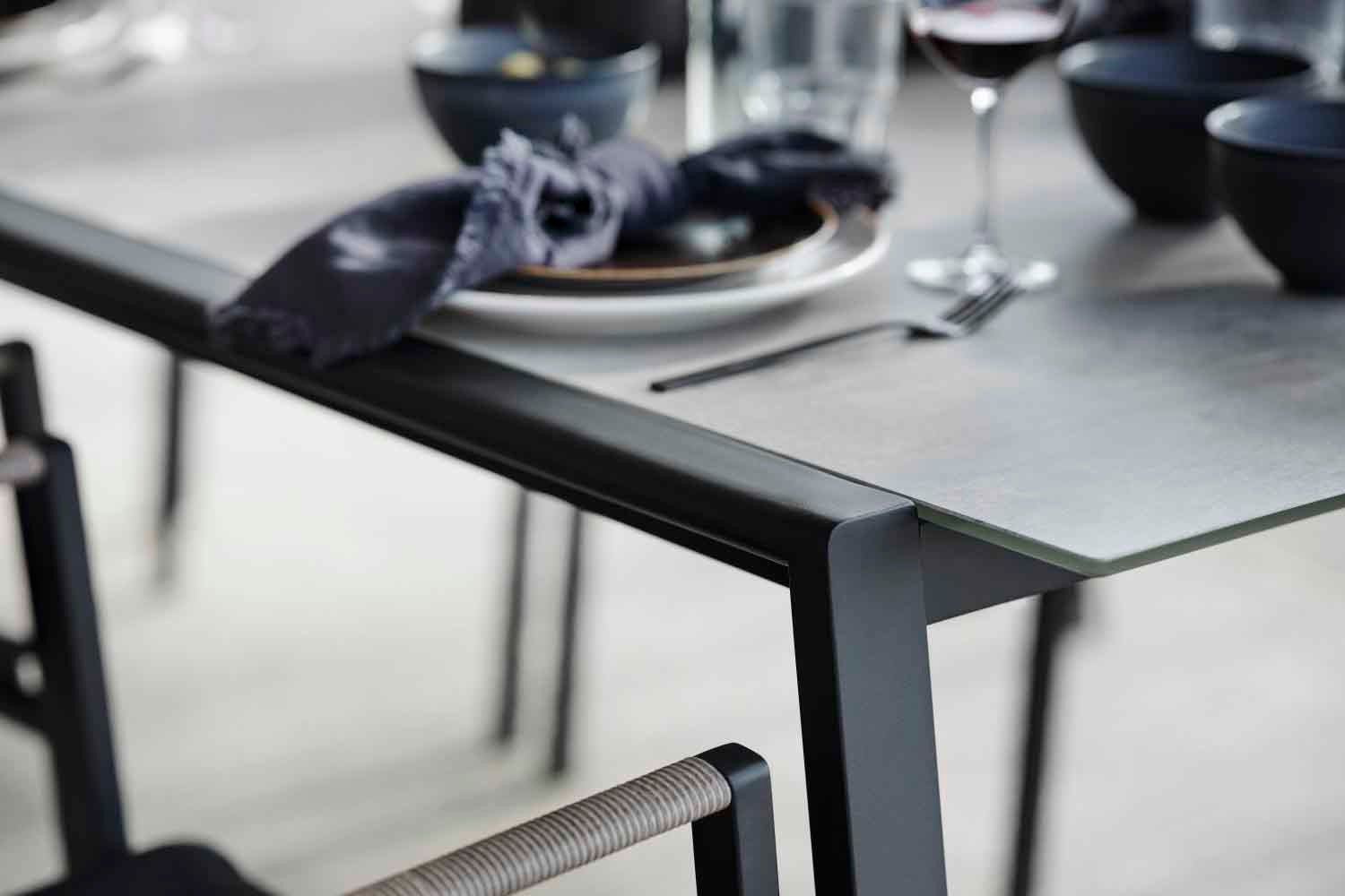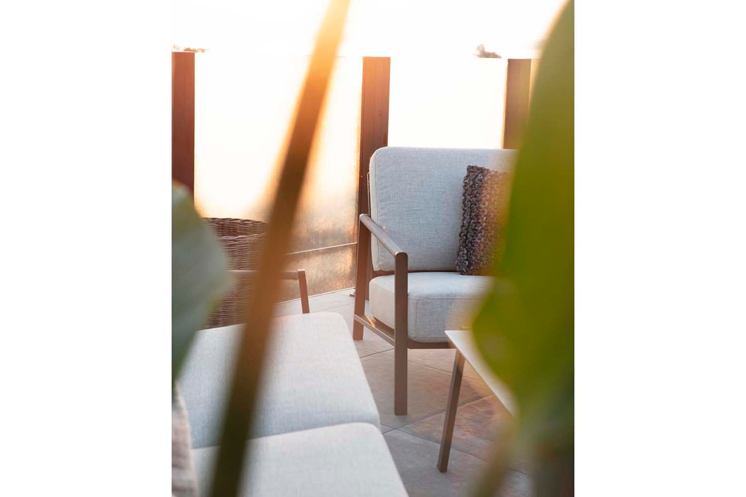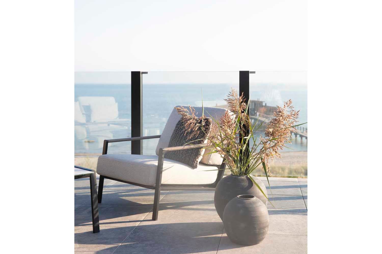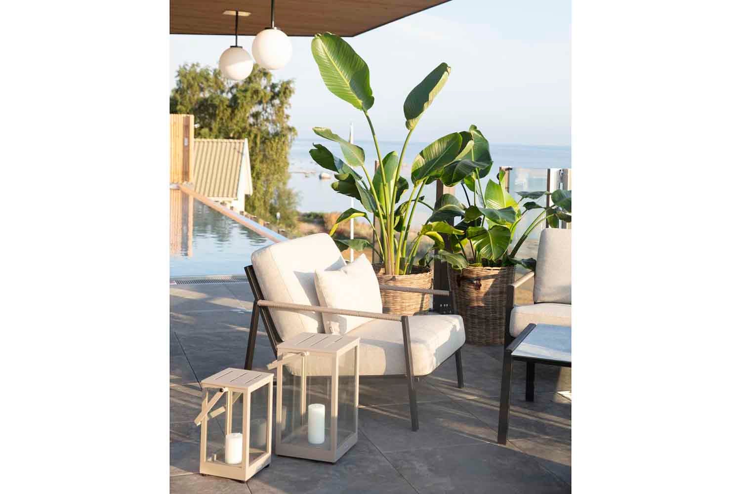 Lyra est une série moderne et très élégante dans un délicieux mélange de matériaux. Le cadre est en acier inoxydable (304) enduit de poudre noire, parfait pour résister à diverses conditions météorologiques. De beaux détails en rotin artificiel sur les accoudoirs.