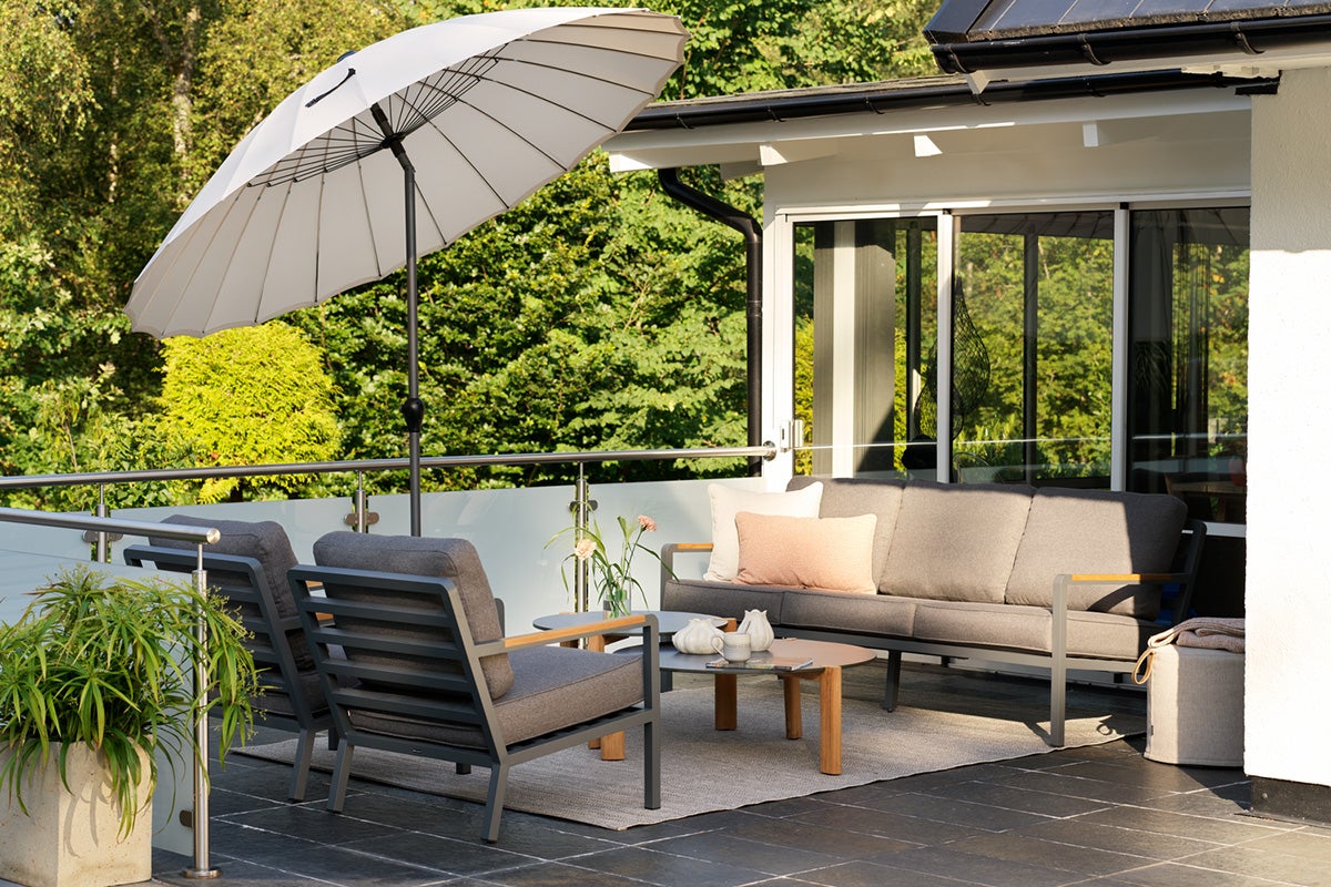 Une série de salons modernes avec une expression sophistiquée. L’assise profonde et les coussins avec doublure en TPU hydrofuge offrent un confort et une praticité durables. La pente généreuse renforce la sensation de détente, tandis que les inserts en teck massif sur les accoudoirs ajoutent une chaleur naturelle et un contraste élégant au cadre en aluminium. La série peut également être empilée pour un rangement facile.