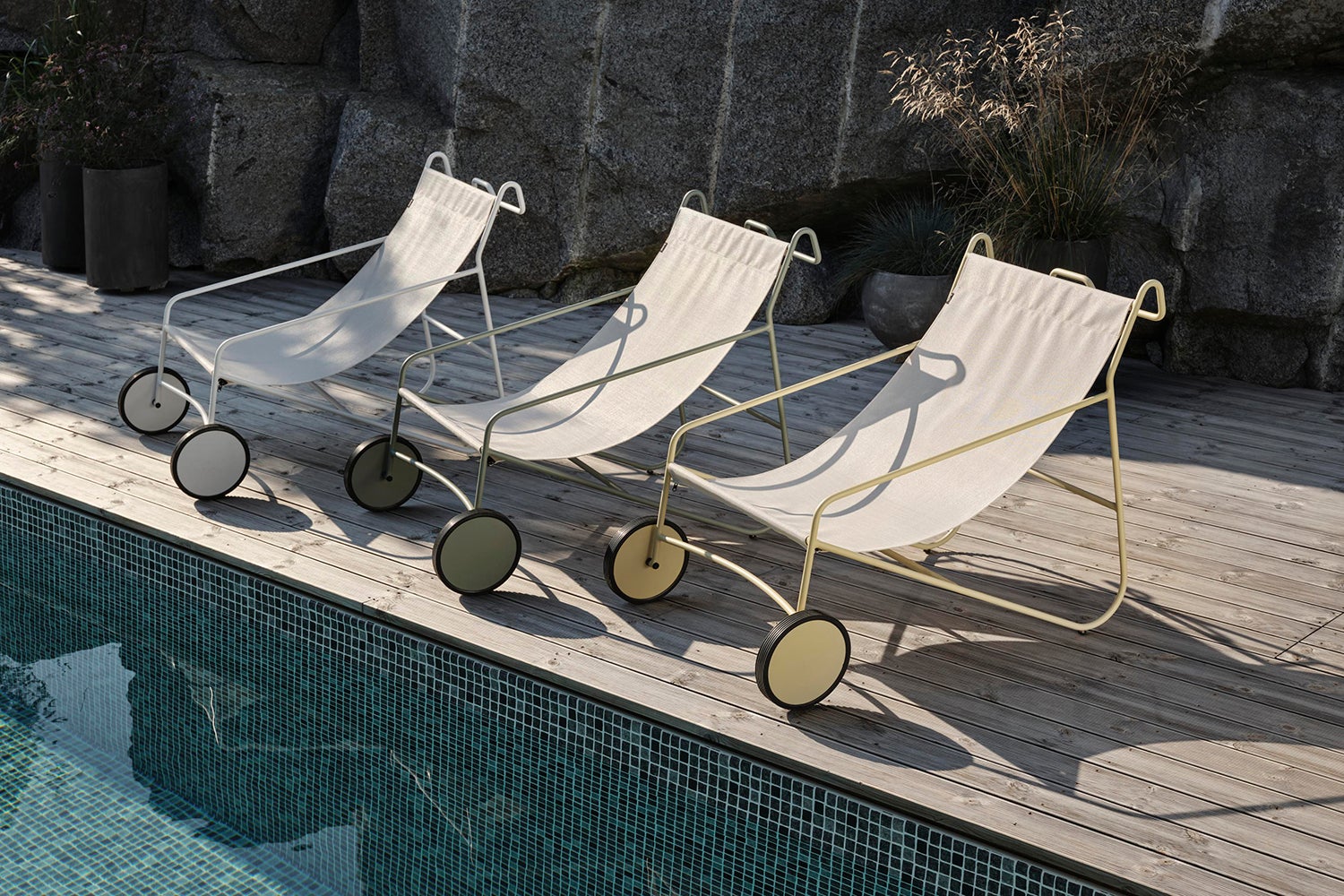 Un meuble ludique, confortable et accrocheur pour le bord de la piscine ou la terrasse – la chaise Poul est impossible à passer sans sourire. Elle a un cadre en aluminium résistant aux intempéries qui se décline en trois couleurs : blanc élégant, Dusty Green tendance ou un citron vif et rafraîchissant.
