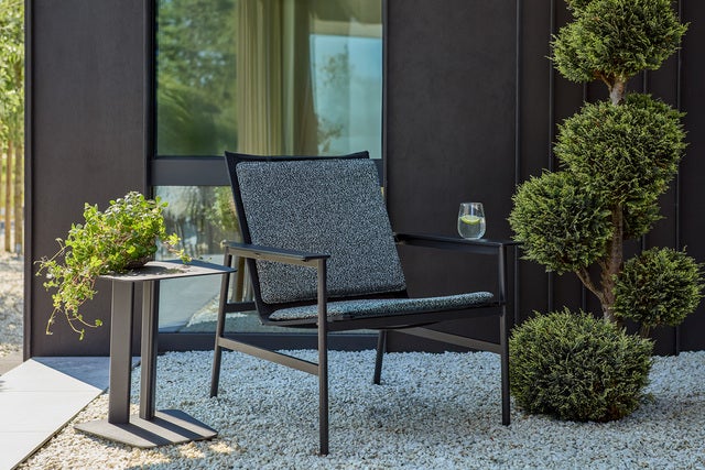 Soro offre un confort - qu’il soit seul ou dans le cadre d’un groupe de canapés. Le fauteuil accueillant est doté de larges accoudoirs et de coussins moelleux en tissu avec un rembourrage élastique. Le coussin de dossier est maintenu en place par un support de poids, et l’assise en textilène donne une sensation d’aération. Le résultat est un fauteuil qui invite toujours à la détente.