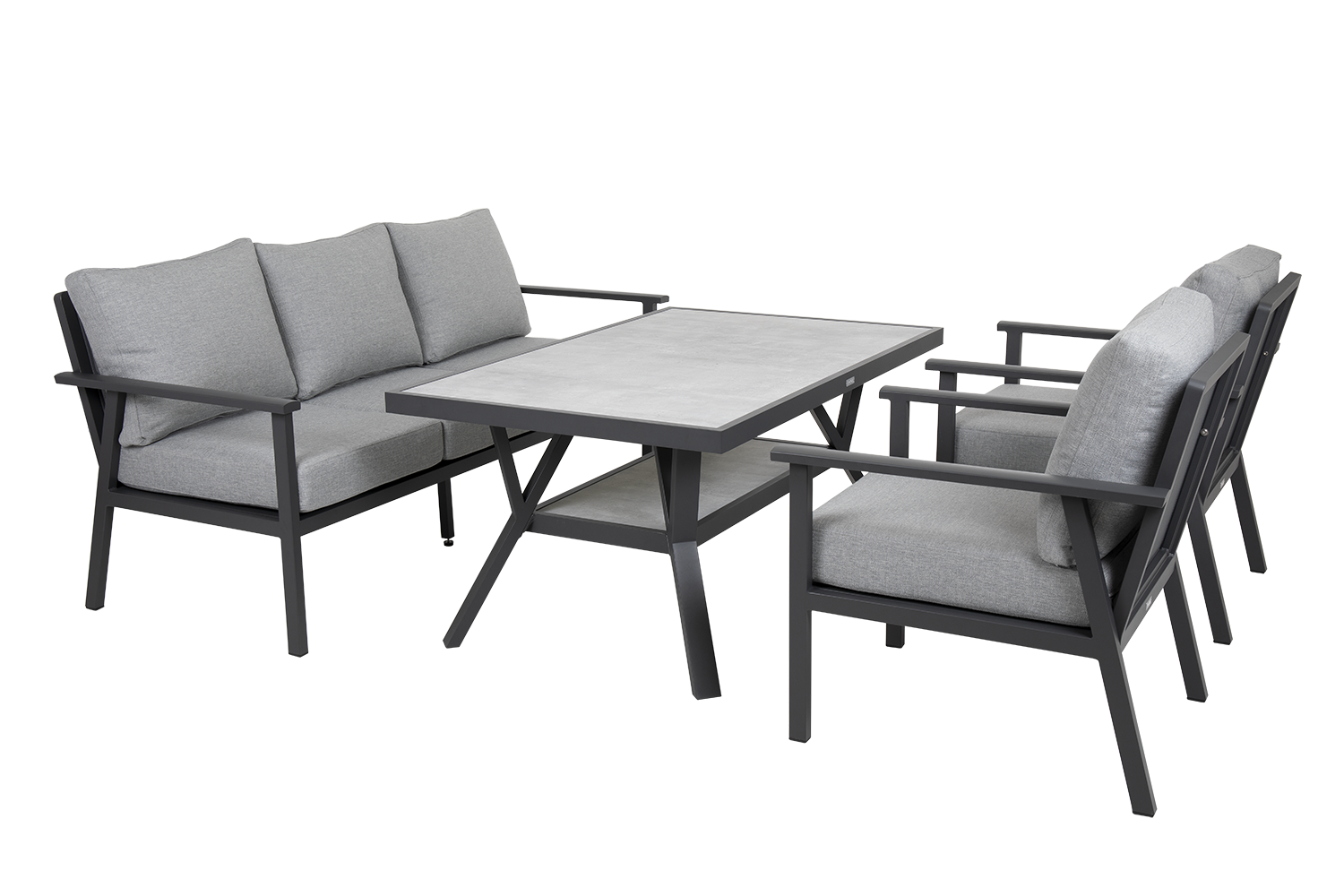 Un concept qui traduit facilement la notion typiquement suédoise de "Fika". Installez-vous confortablement et détendez-vous. Vous êtes juste un peu plus haut que les groupes Lounge. Cela convient remarquablement, aussi bien pour une pause café que pour un repas léger. La hauteur des tables Low dining est en général comprise entre 60 et 68 cm. Ces meubles sont souvent un excellent choix pour les balcons et les espaces extérieurs, où les meubles servent d'habitude plusieurs fonctions.